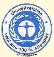 Recyclingpapier auf eine Zertifizierung mit dem "Blauen Engel" zu